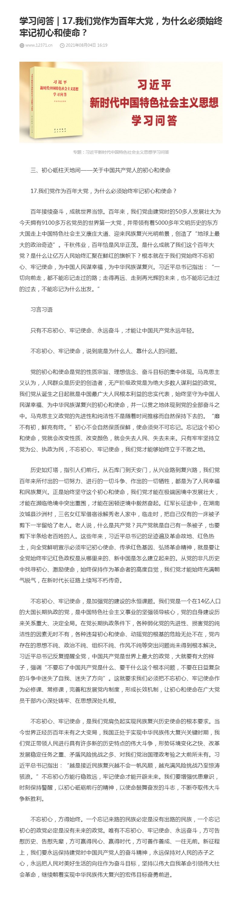 17.我们党作为百年大党,为什么必须始终牢记初心和使命?