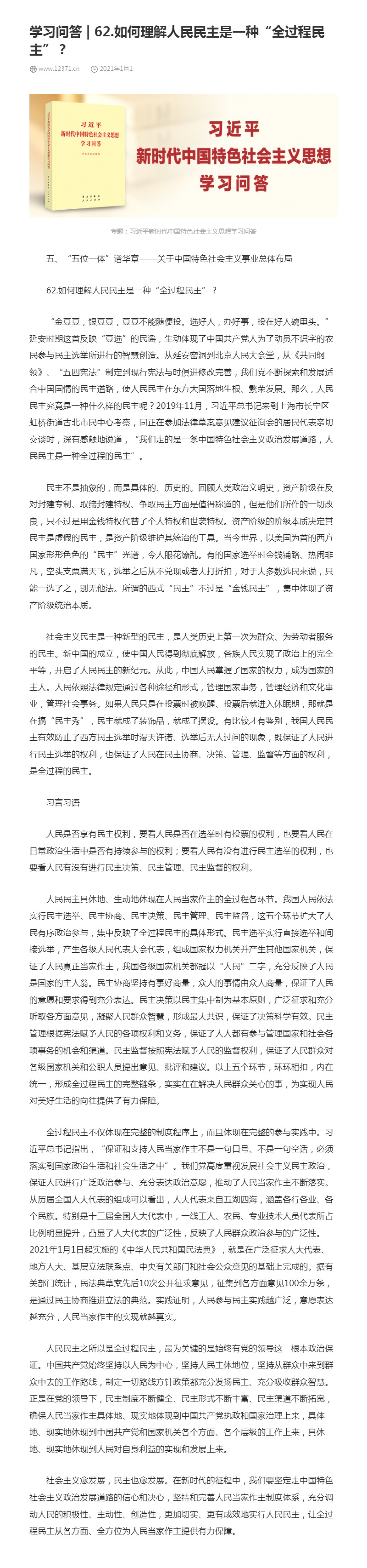 62.如何理解人民民主是一种“全过程民主”?