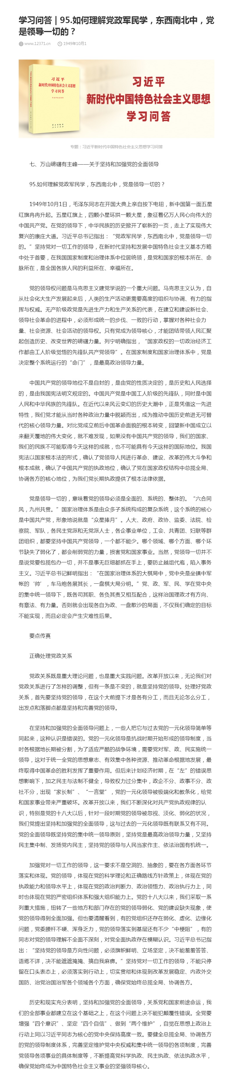 95.如何理解党政军民学,东西南北中,党是领导一切的?