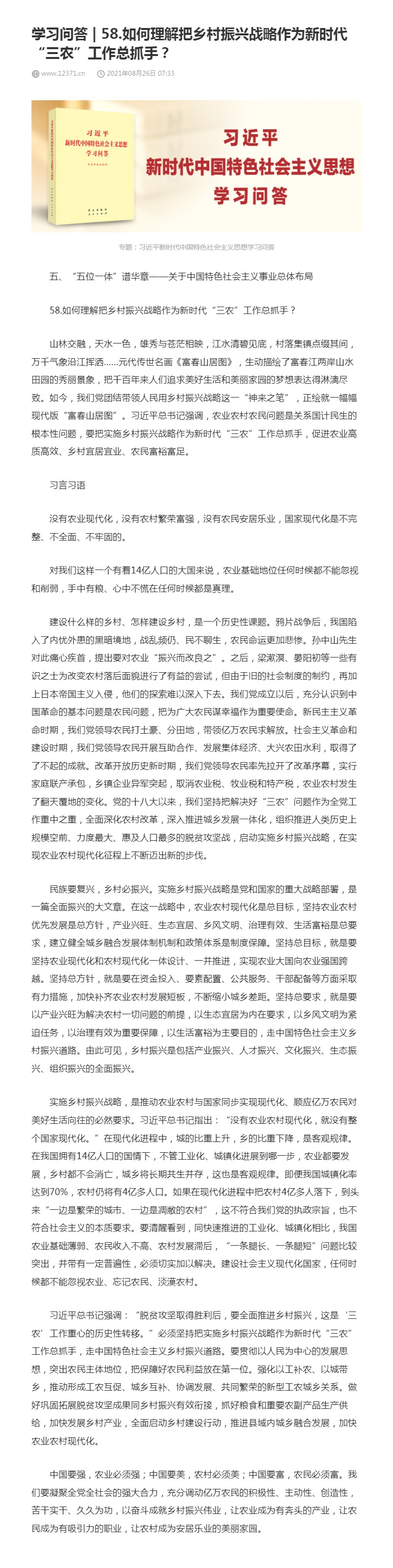 58.如何理解把乡村振兴战略作为新时代“三农”工作总抓手?