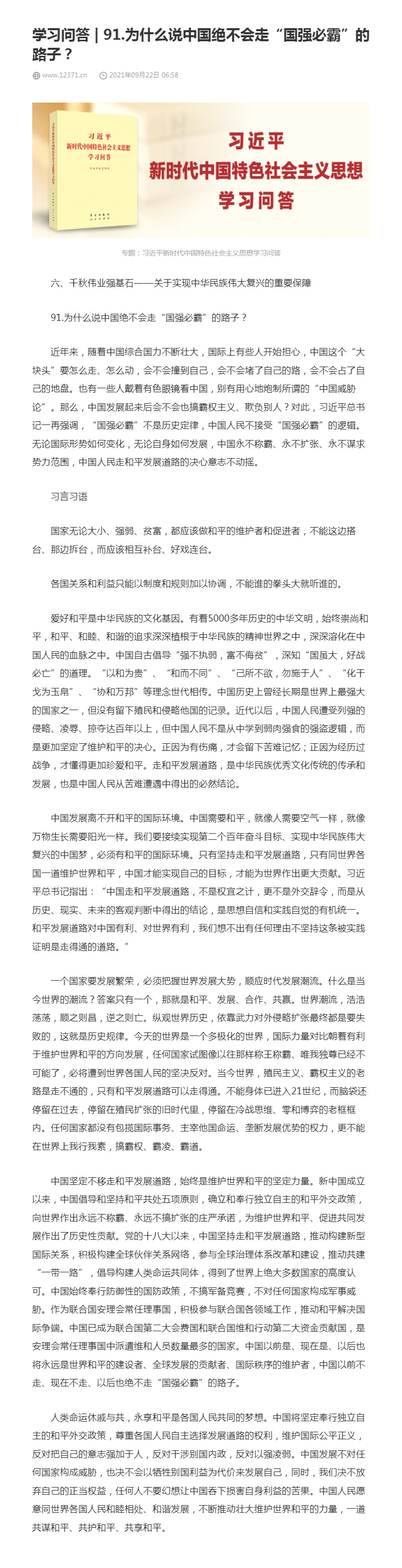 91.为什么说中国绝不会走“国强必霸”的路子?