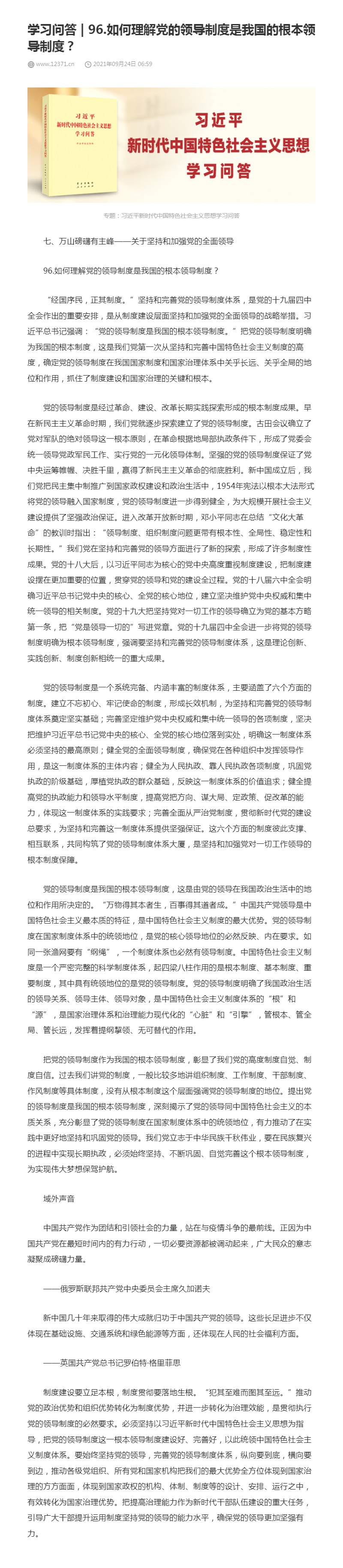96.如何理解党的领导制度是我国的根本领导制度?