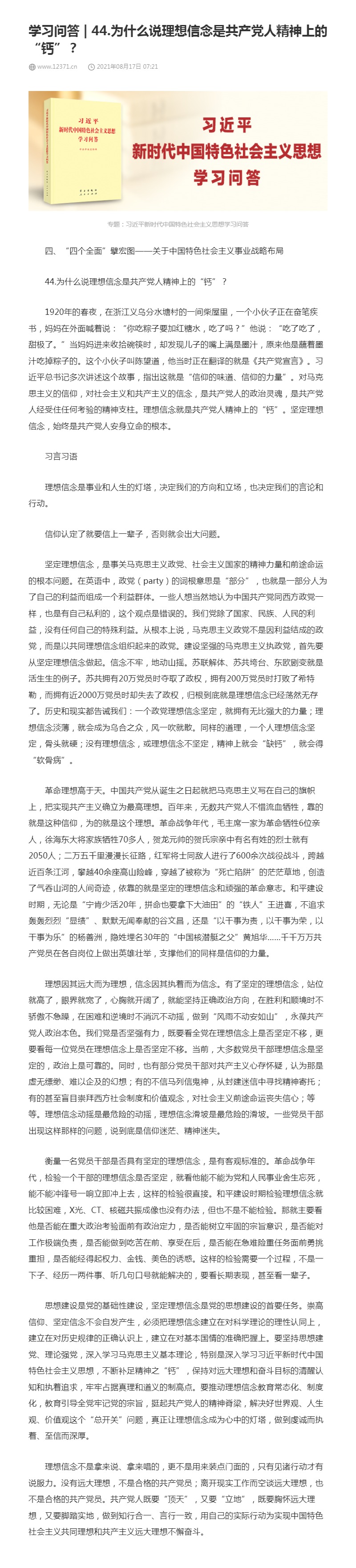 44.为什么说理想信念是共产党人精神上的“钙”?