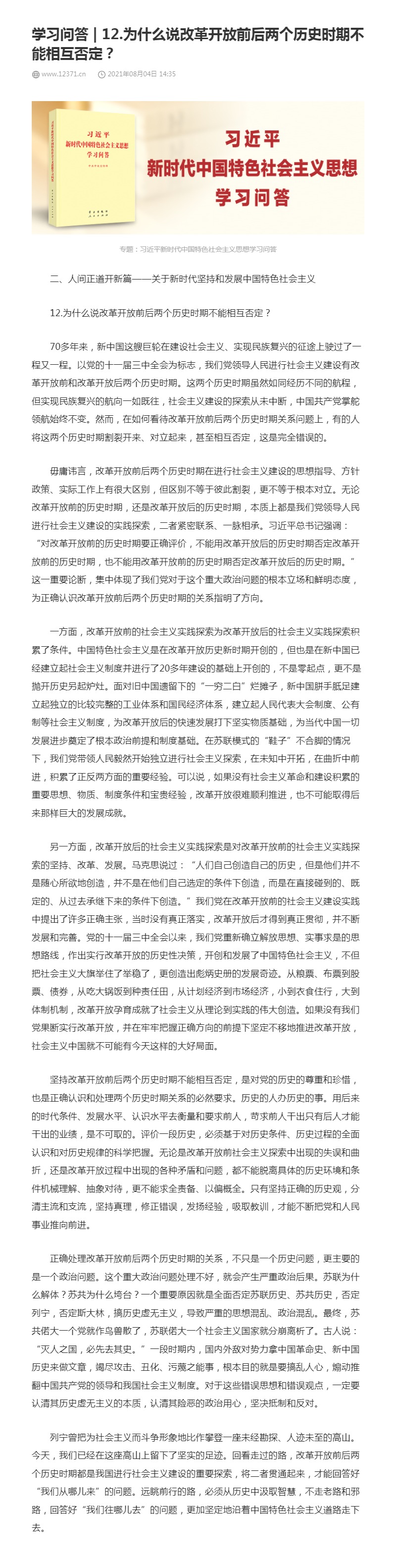 12.为什么说改革开放前后两个历史时期不能相互否定?