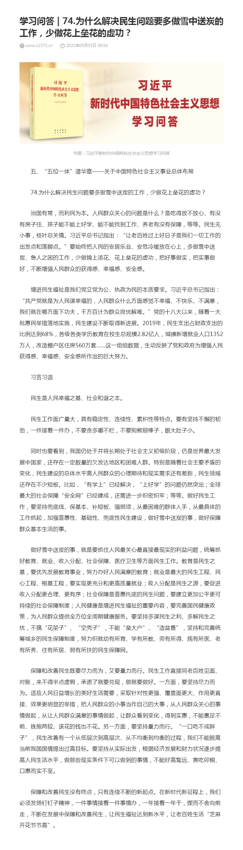 74.为什么解决民生问题要多做雪中送炭的工作,少做花上垒花的虚功?