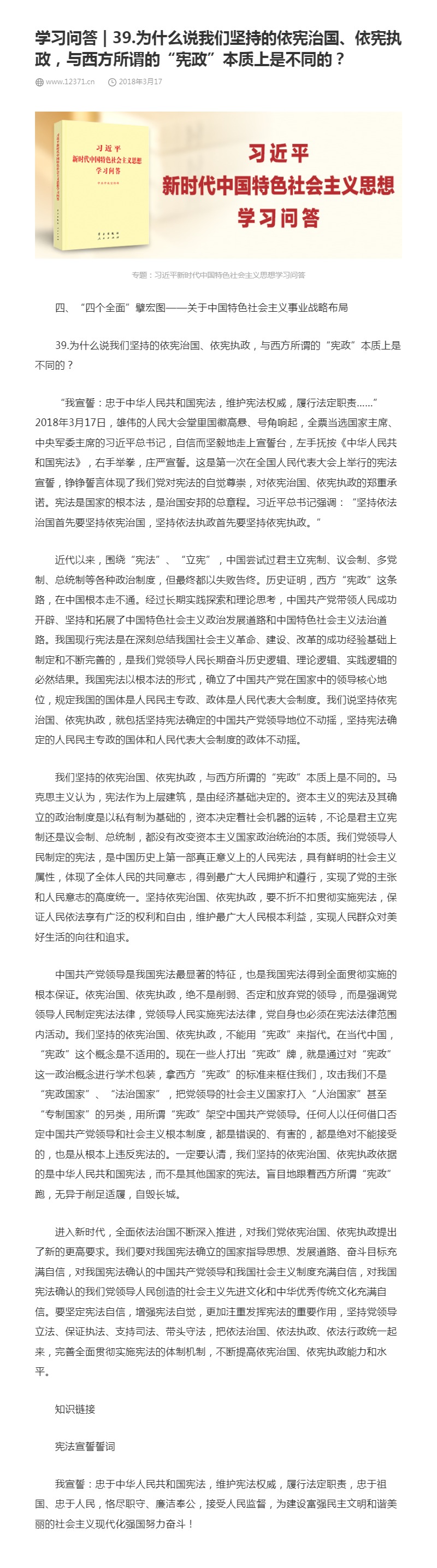 39.为什么说我们坚持的依宪治国、依宪执政,与西方所谓的“宪政”本质上是不同的?