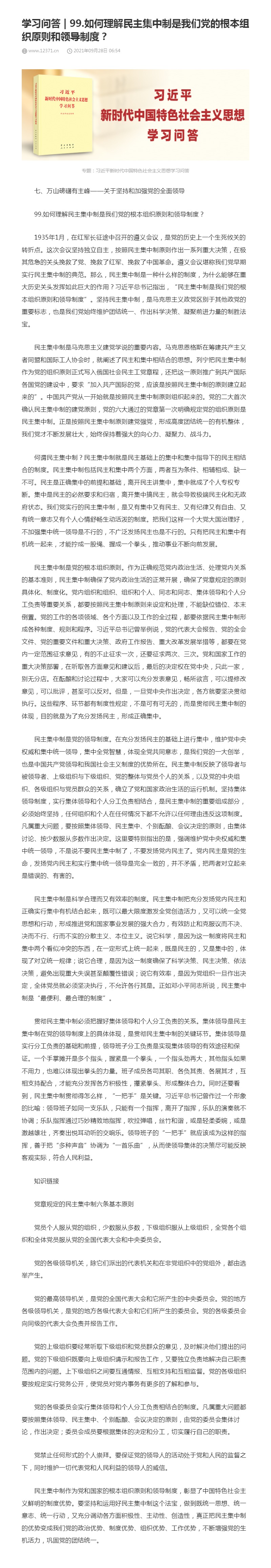 99.如何理解民主集中制是我们党的根本组织原则和领导制度?