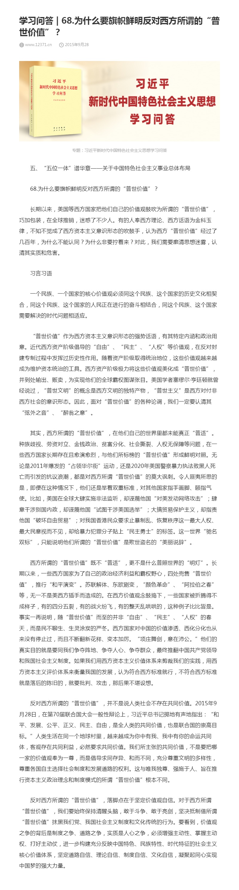 68.为什么要旗帜鲜明反对西方所谓的“普世价值”?