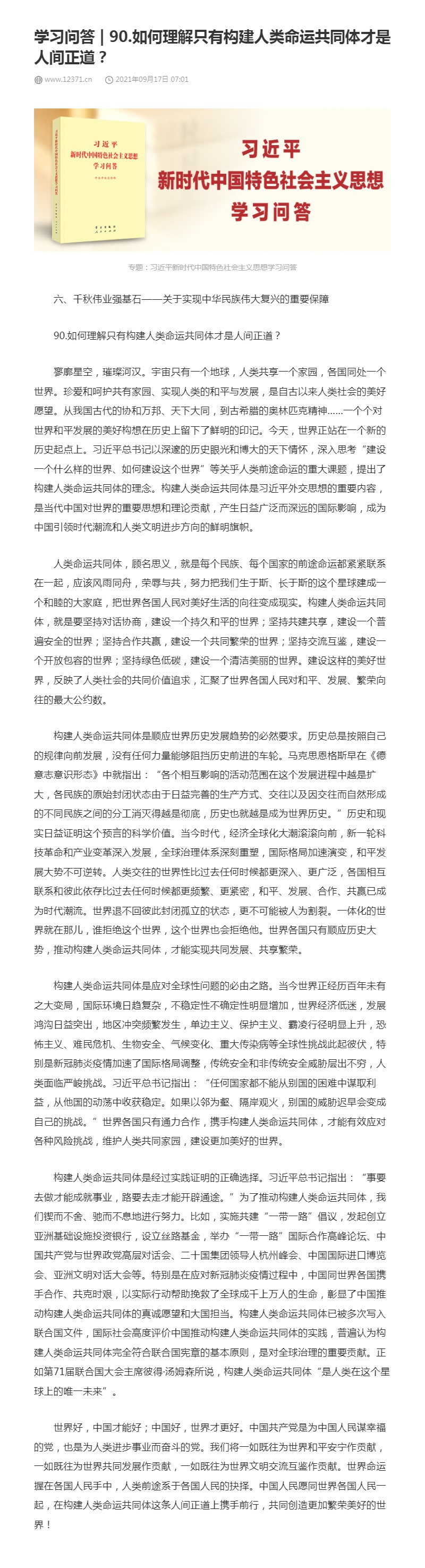 90.如何理解只有构建人类命运共同体才是人间正道?