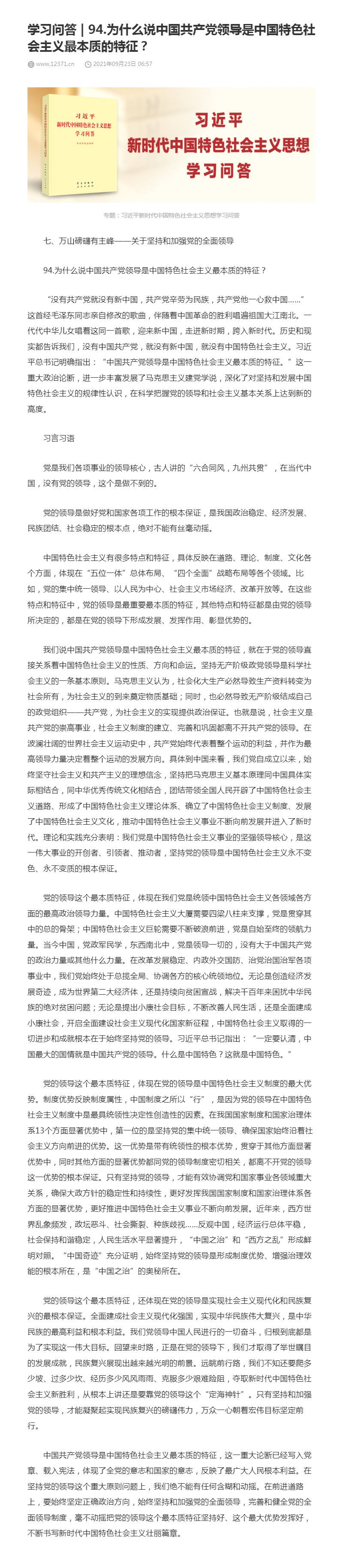 94.为什么说中国共产党领导是中国特色社会主义最本质的特征?