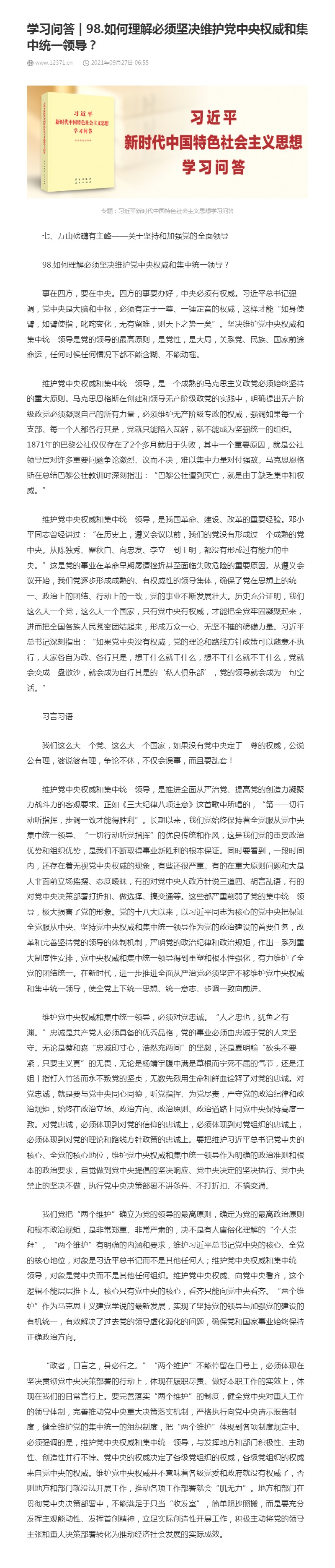 98.如何理解必须坚决维护党中央权威和集中统一领导?