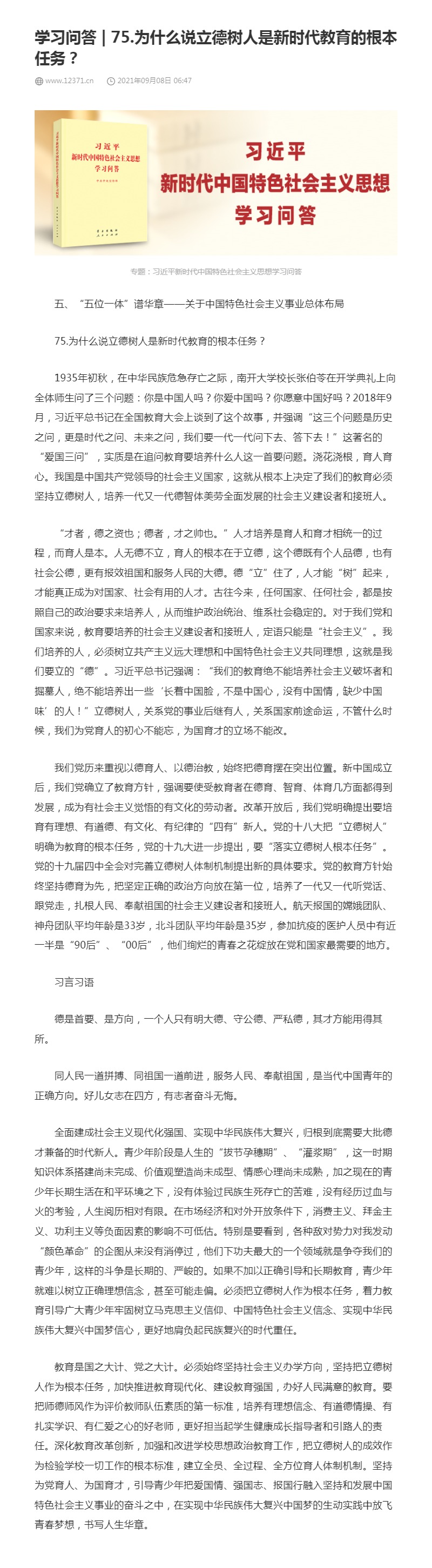 75.为什么说立德树人是新时代教育的根本任务?