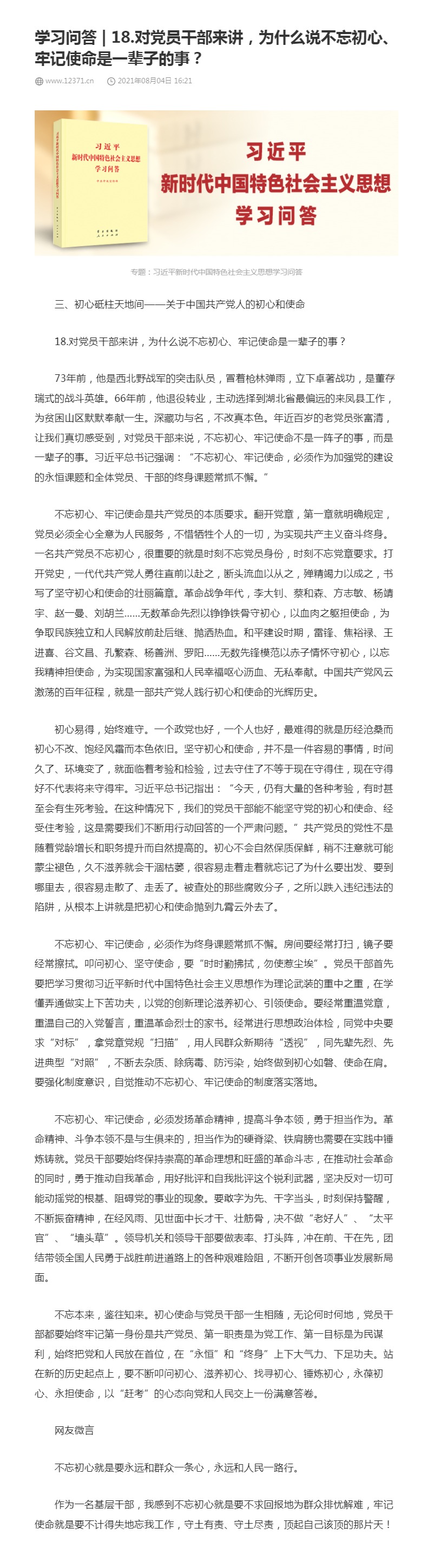 18.对党员干部来讲,为什么说不忘初心、牢记使命是一辈子的事?