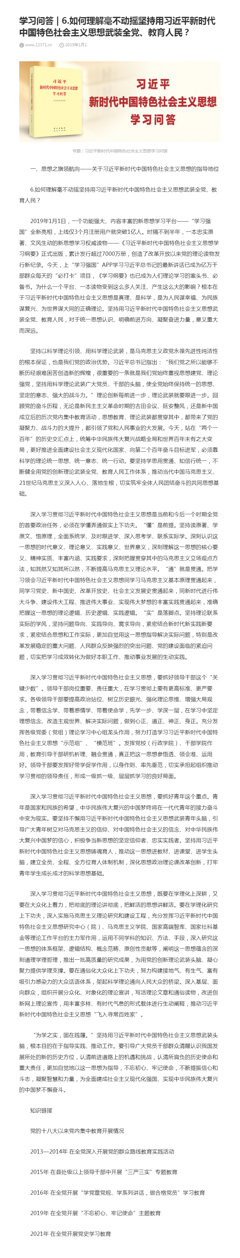 6.如何理解毫不动摇坚持用习近平新时代中国特色社会主义思想武装全党、教育人民?