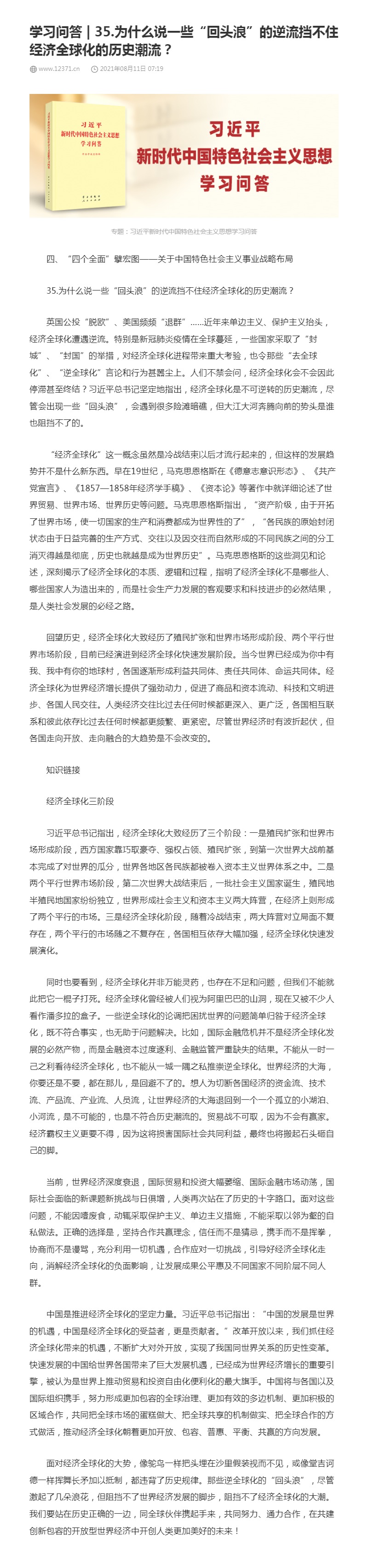 35.为什么说一些“回头浪”的逆流挡不住经济全球化的历史潮流?