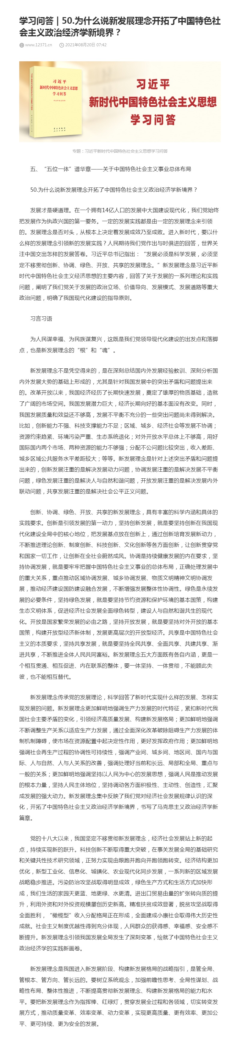 50.为什么说新发展理念开拓了中国特色社会主义政治经济学新境界?