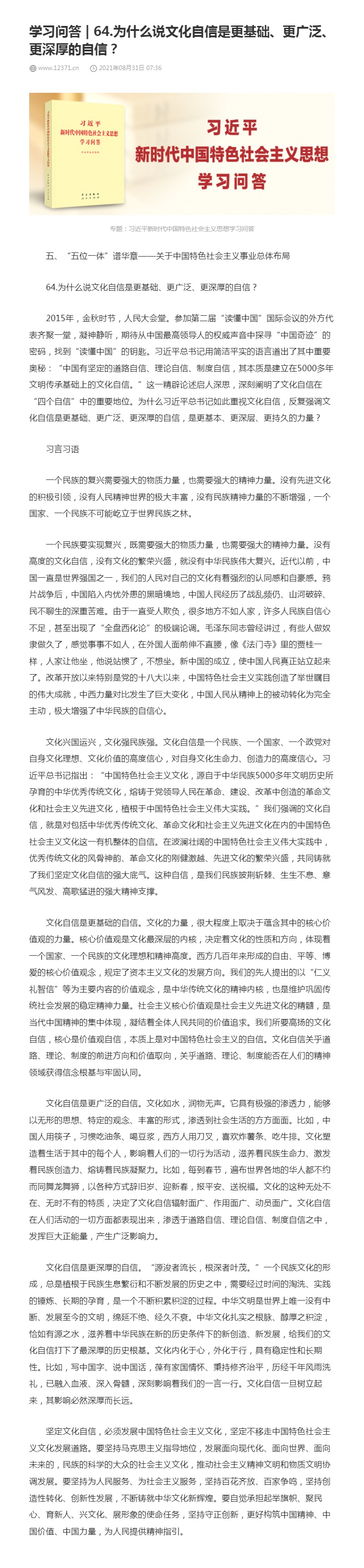 64.为什么说文化自信是更基础、更广泛、更深厚的自信?