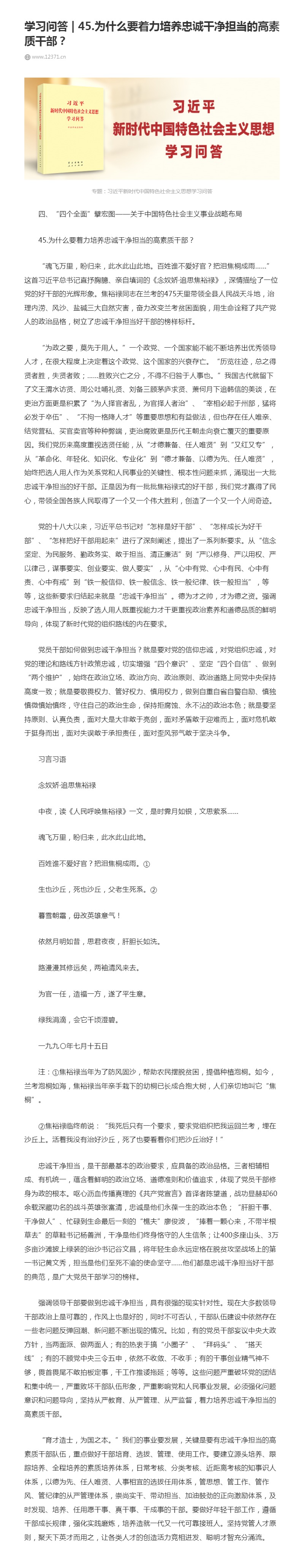 45.为什么要着力培养忠诚干净担当的高素质干部?