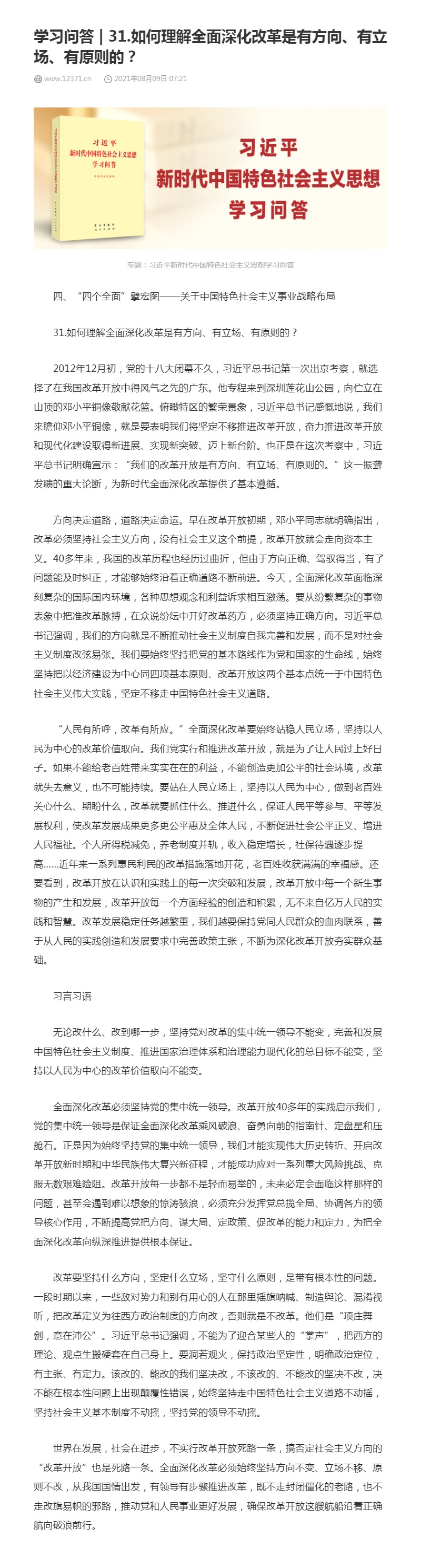 31.如何理解全面深化改革是有方向、有立场、有原则的?