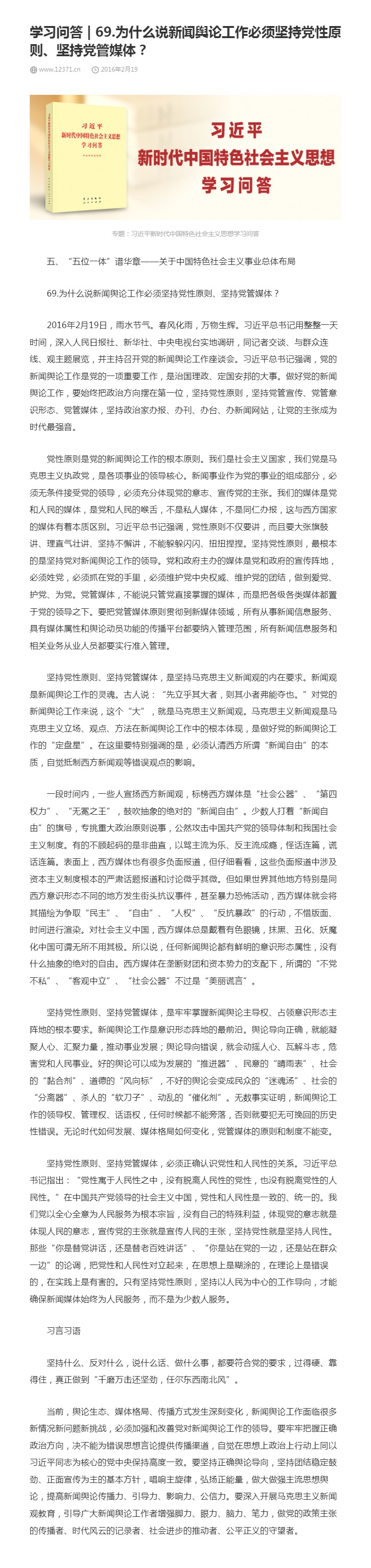 69.为什么说新闻舆论工作必须坚持党性原则、坚持党管媒体?
