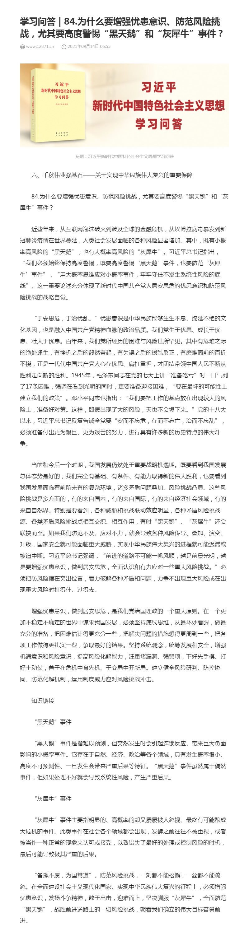84.为什么要增强忧患意识、防范风险挑战,尤其要高度警惕“黑天鹅”和“灰犀牛”事件?