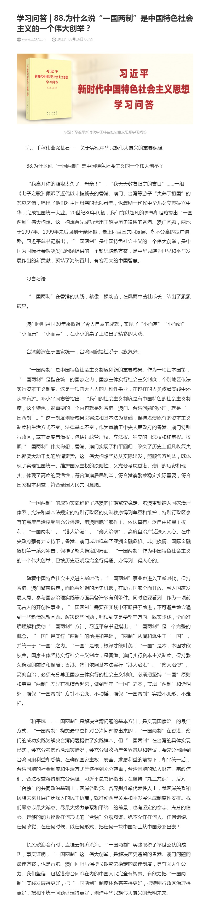 88.为什么说“一国两制”是中国特色社会主义的一个伟大创举?