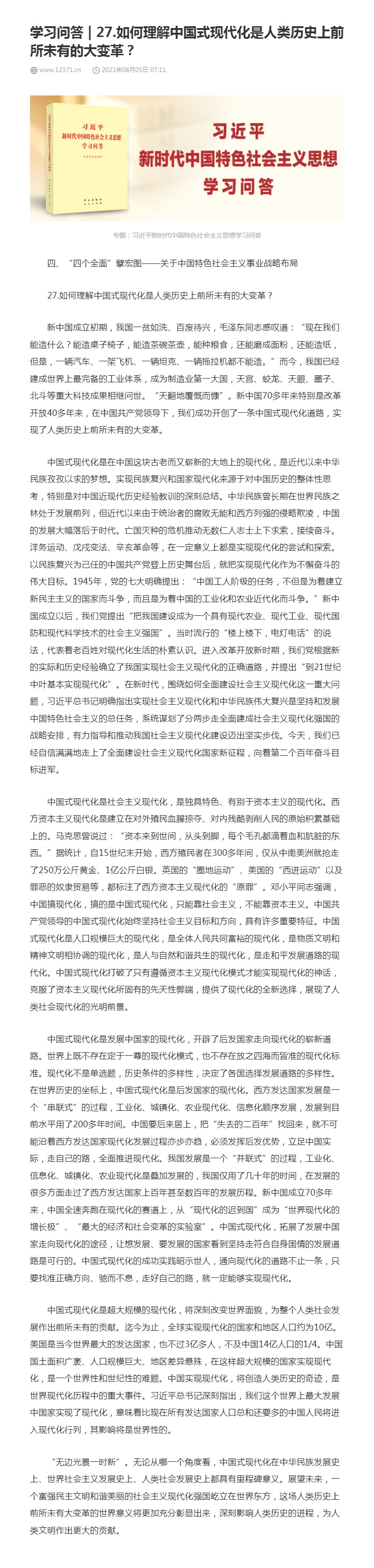 27.如何理解中国式现代化是人类历史上前所未有的大变革?