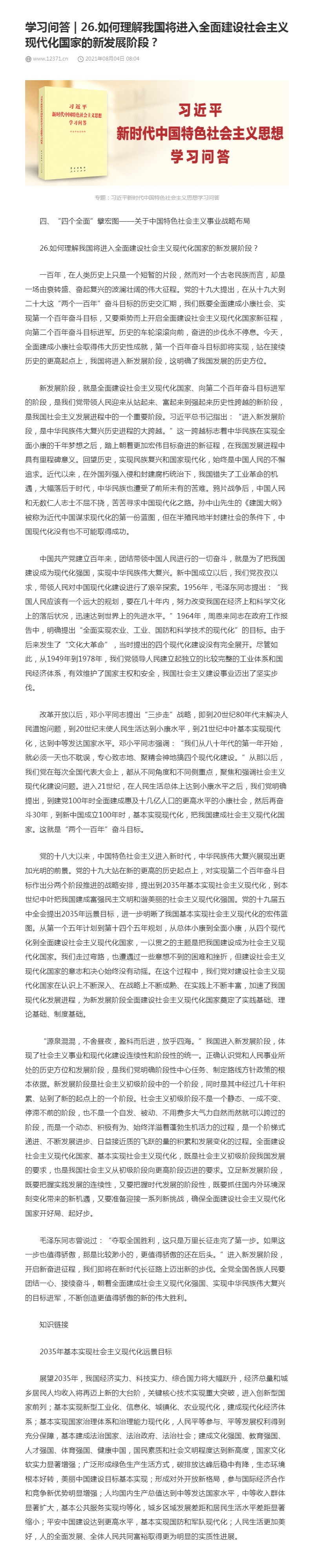26.如何理解我国将进入全面建设社会主义现代化国家的新发展阶段?