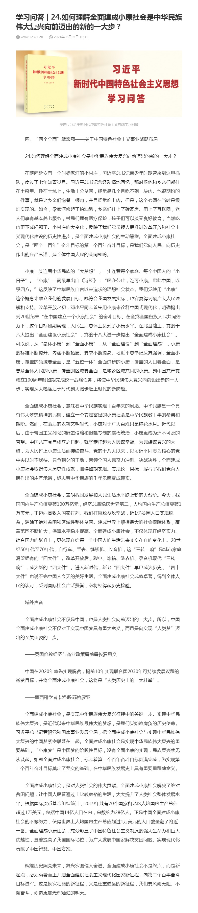 24.如何理解全面建成小康社会是中华民族伟大复兴向前迈出的新的一大步?
