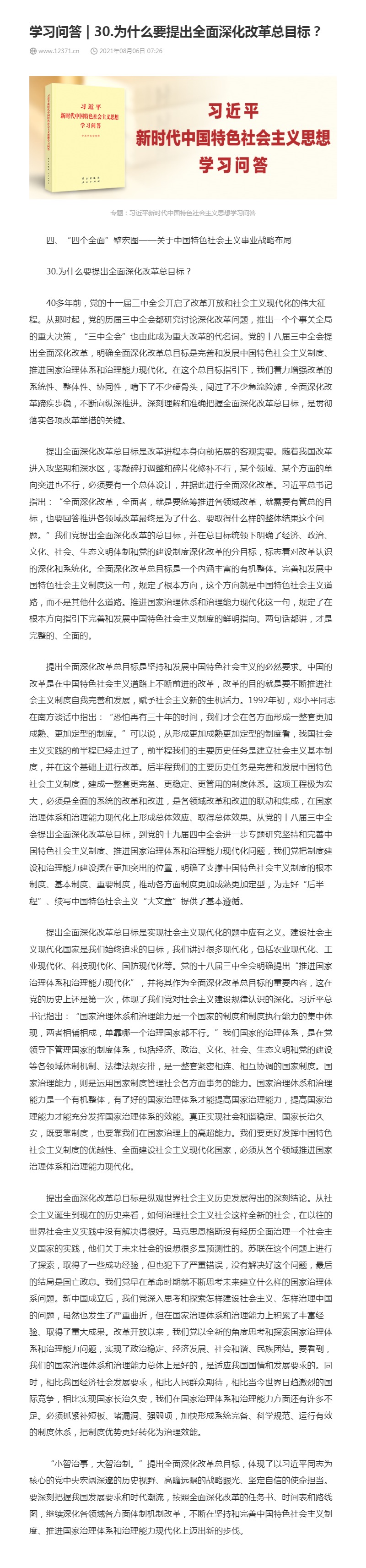 30.为什么要提出全面深化改革总目标?