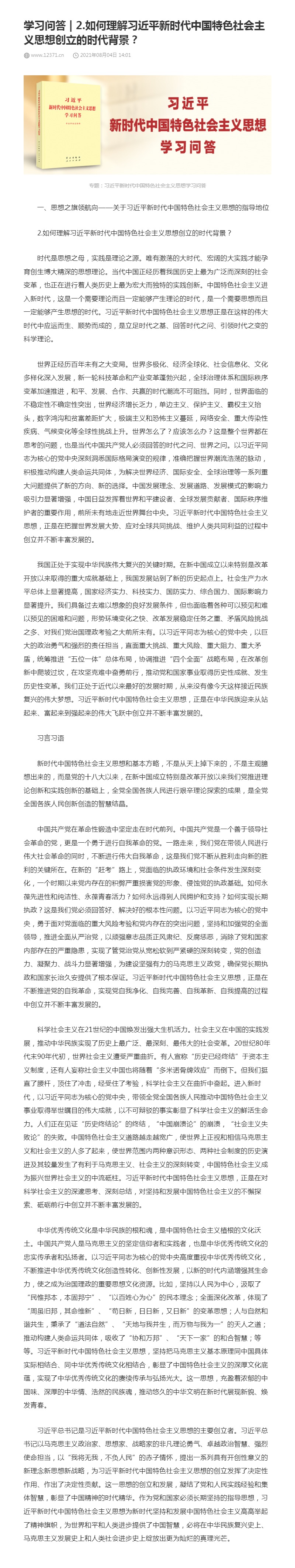 2.如何理解习近平新时代中国特色社会主义思想创立的时代背景?