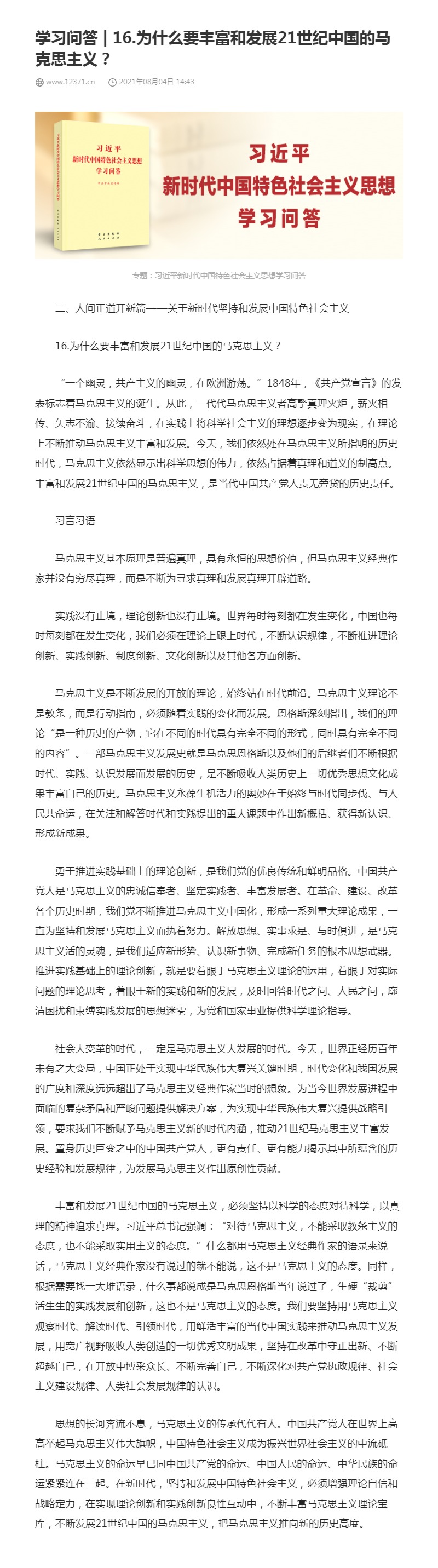 16.为什么要丰富和发展21世纪中国的马克思主义?