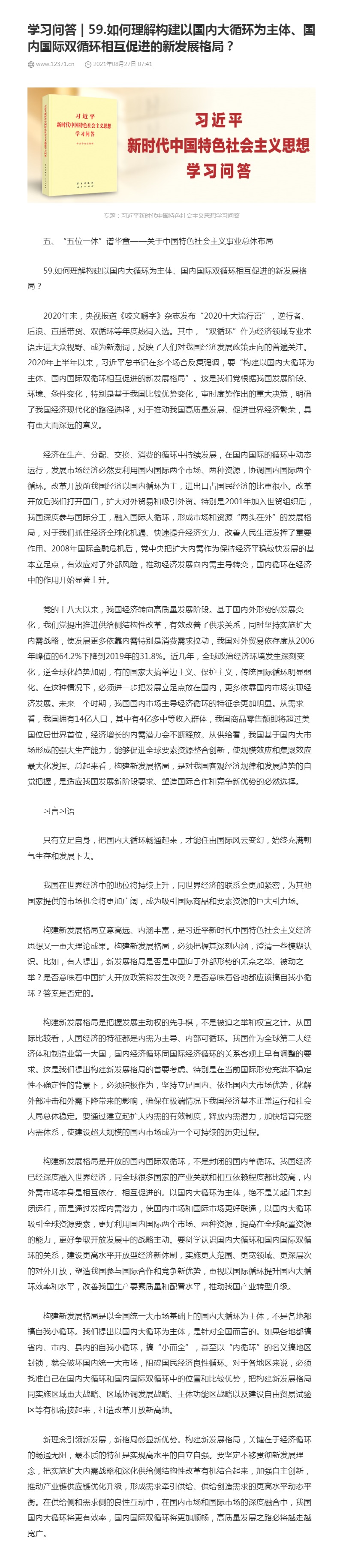 59.如何理解构建以国内大循环为主体、国内国际双循环相互促进的新发展格局?