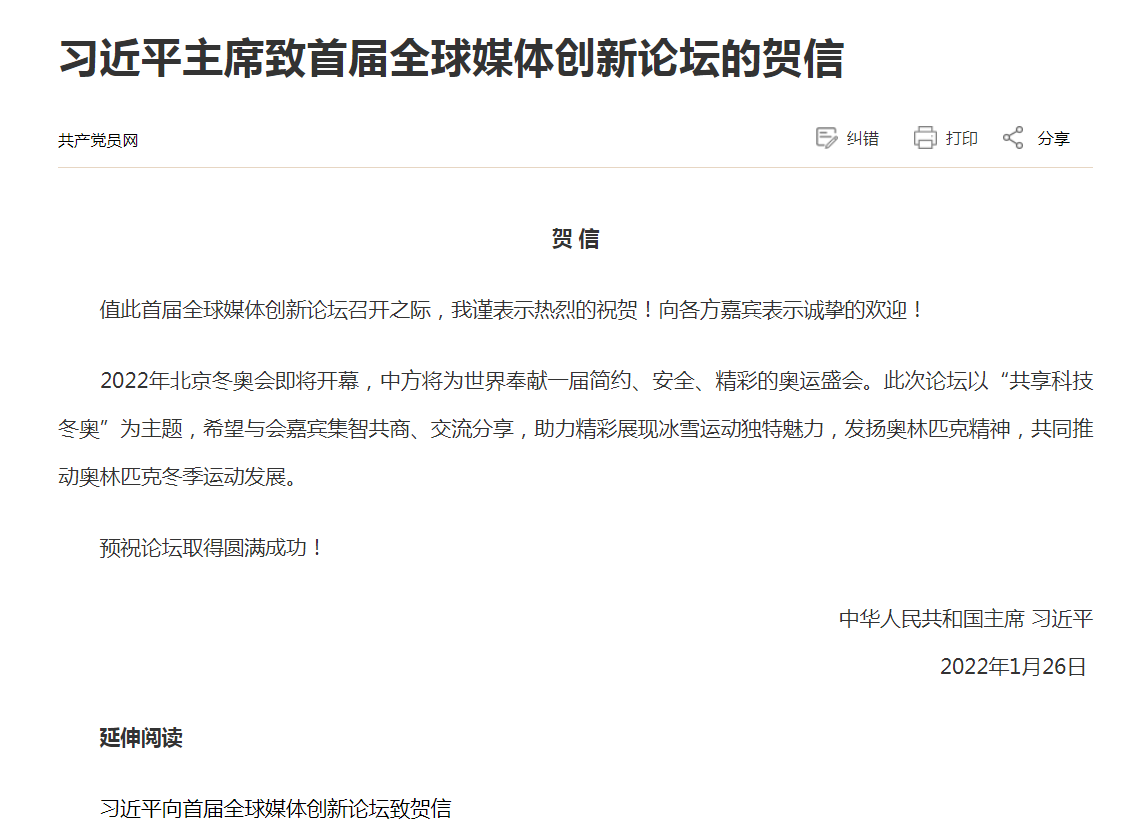 【习近平最新系列重要讲话】习近平致首届全球媒体创新论坛的贺信