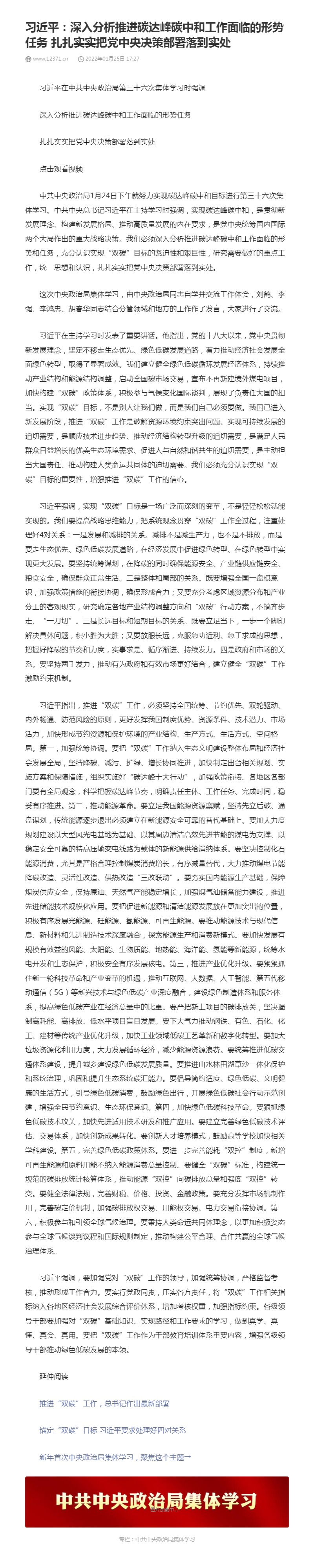 【习近平最新系列重要讲话】习近平:深入分析推进碳达峰碳中和工作面临的形势任务 扎扎实实把党中央决策部署落到实处