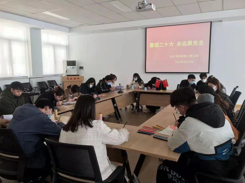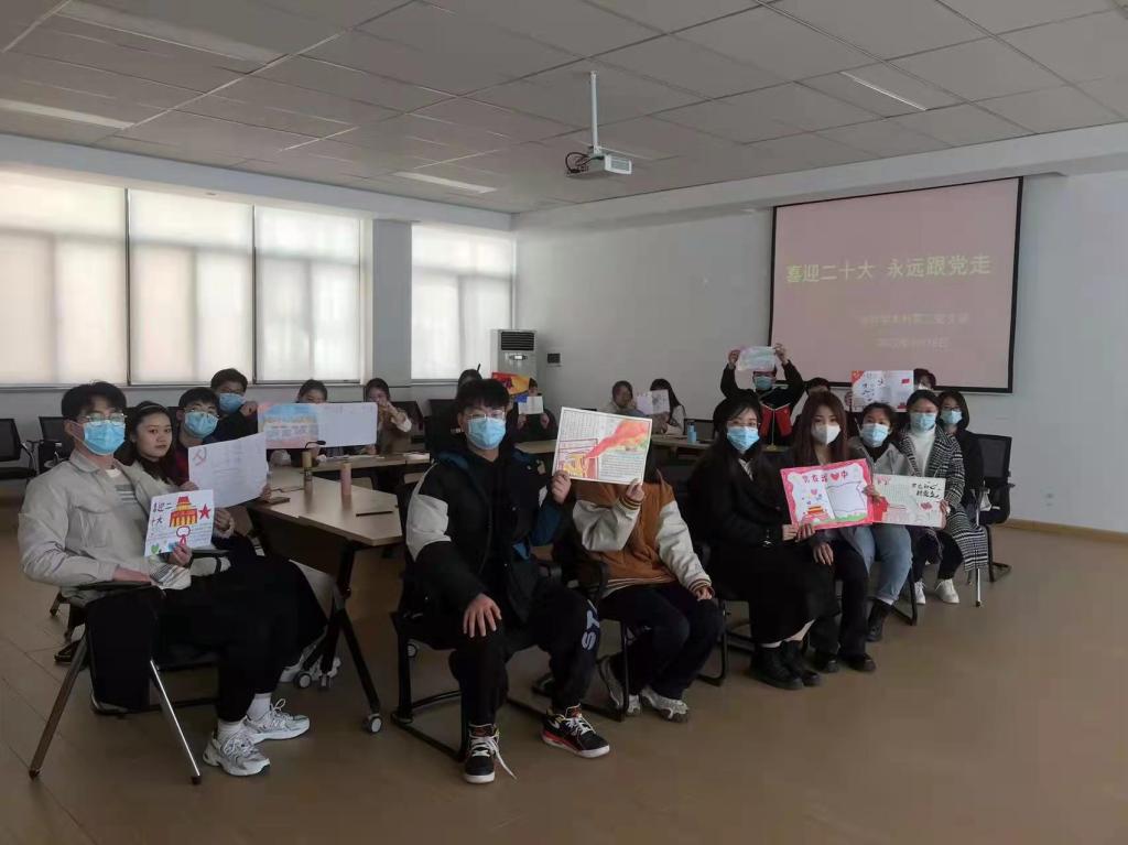 为迎接和学习宣传贯彻党的二十大精神,不断深化学习贯彻习近平新时代中国特色社会主义思想,引导师生党员深刻感悟新时代党和国家事业发展的伟大成就,会计学专业本科第三党支部于3月18日在教学四号楼209教室开展“喜迎二十大,永远跟党走”手抄报活动。本次活动由支部书记郑杰同志主持,全体师生党员参加。