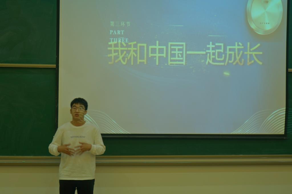 本次比赛共分三个环节。在“有备演讲”环节,参赛选手们讲述“我心中的伟人”。为中华之崛起而读书的周恩来、致力于实现“禾下乘凉梦”的袁隆平……演讲者慷慨激扬,一位位伟人的先进事迹,直击人心,令人深思;“团结一致”环节,每支队伍各派一人上台答题,参赛队伍轮流答题,头脑风暴一触即发,各位成员集思广益;“一致对外”环节,现场求助将比赛氛围推向高潮。即兴演讲环节,参赛选手们围绕“我与祖国一起成长”的主题进行现场即兴演讲,这一环节极大的考验了各参赛选手的应变能力、语言组织能力。比赛最后,文法学院团委副书记张磊对本次赛事做总结点评。经过激烈角逐,21级法本一班在本次比赛中斩获一等奖。
