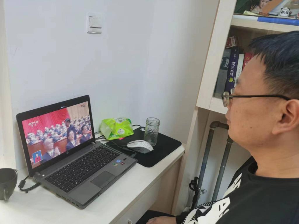 上午10点,马克思主义学院院长王宪政、党总支书记窦峰、教学秘书苗淑娟以及在校的老师们在自勉堂303集中收看大会开幕会实况,其他老师也通过多种平台进行收看和学习。老师们怀着激动的心情聆听党的二十大报告,并认真记录。