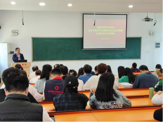 4月27日下午,管理学院学习贯彻习近平新时代中国特色社会主义思想主题教育动员部署会在教学2号楼208召开。学院全体党委委员、教职工及学生党员代表参加会议。会议由学院党委书记职正路主持。