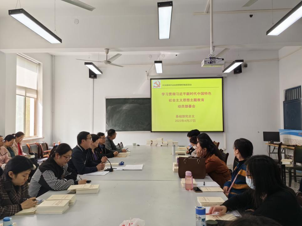 按照《中共河南省委关于在全省党员中深入开展学习贯彻习近平新时代中国特色社会主义思想主题教育的实施意见》(豫发[2023]7号)精神,根据《郑州升达经贸管理学院关于深入开展学习贯彻习近平新时代中国特色社会主义思想主题教育实施方案》部署要求,为落实好校党委学习贯彻习近平新时代中国特色社会主义思想主题教育动员部署会议安排,基础部结合院部实际成立了主题教育领导小组,制定了实施方案。基础部党总支于4月27日下午,在综合楼218会议室,召开了学习贯彻习近平新时代中国特色社会主义思想主题教育动员部署会。会议由基础部书记、主任、副主任、党总支委员、党支部书记、全体党员、预备党员、发展对象及入党积极分子参会,会议由党总支书记张志银同志主持。