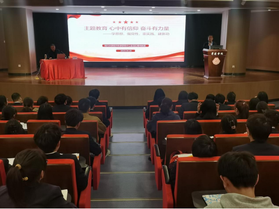 4月27日下午,管理学院邀请郑州大学纪德尚教授在双创大讲堂举行学习贯彻习近平新时代中国特色社会主义思想主题教育专题党课《主题教育心中有信仰奋斗有力量》。学院党委书记职正路同师生党员、第十七期发展对象和积极分子参加聆听。