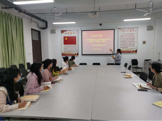2023年5月8日,工程造价教研室党支部开展了支部书记上党课和主题学习活动,工程造价教研室党支部全体党员教师参加。此次学习活动围绕深刻理解党的二十大报告关于教育的新思想、新战略、新要求和深入开展学习贯彻习近平新时代中国特色社会主义思想主题教育开展。此次活动中建筑工程学院党委副书记、副院长高燕同志和工程造价党支部书记刘亚萍同志作了重要讲话。