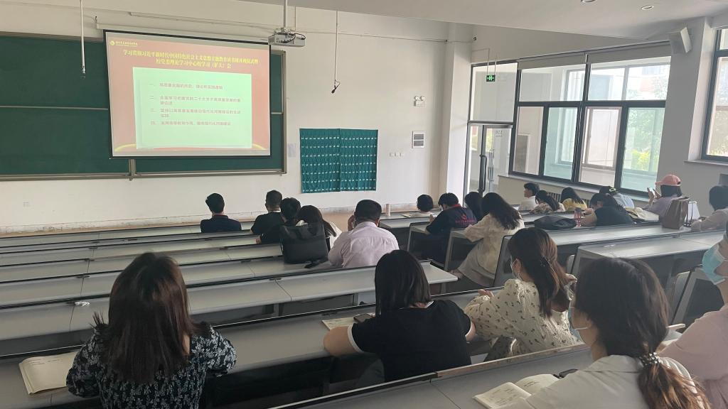 5月18日下午,学校举行学习贯彻习近平新时代中国特色社会主义思想主题教育读书班开班仪式暨党委理论学习中心组学习(扩大)会,文法学院在教学1号楼118教室组织学院全体党员教职员和学生党支部委员参加学习。