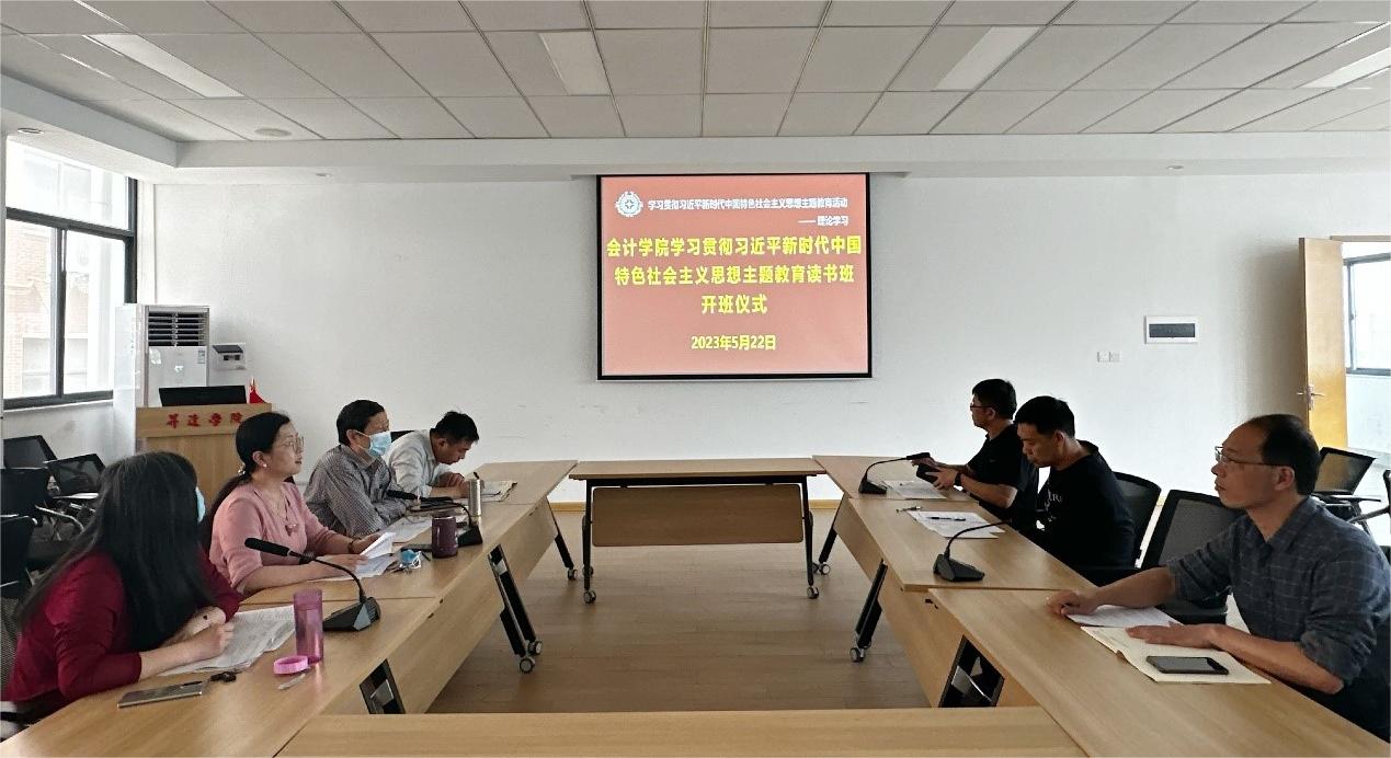 根据学校党委主题教育工作和学院党委工作安排,5月22日,会计学院举行学习贯彻习近平新时代中国特色社会主义思想主题教育读书班开仪式暨党委理论学习中心组学习会。学院党委理论学习中心组成员参加,院党委书记张蕾主持。