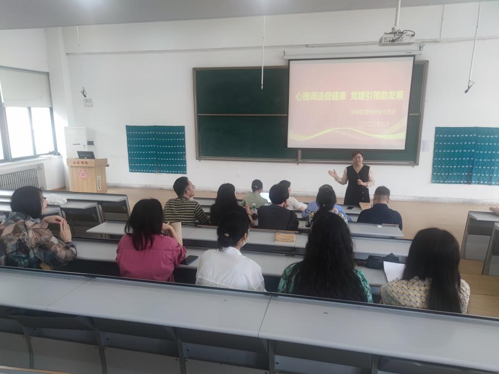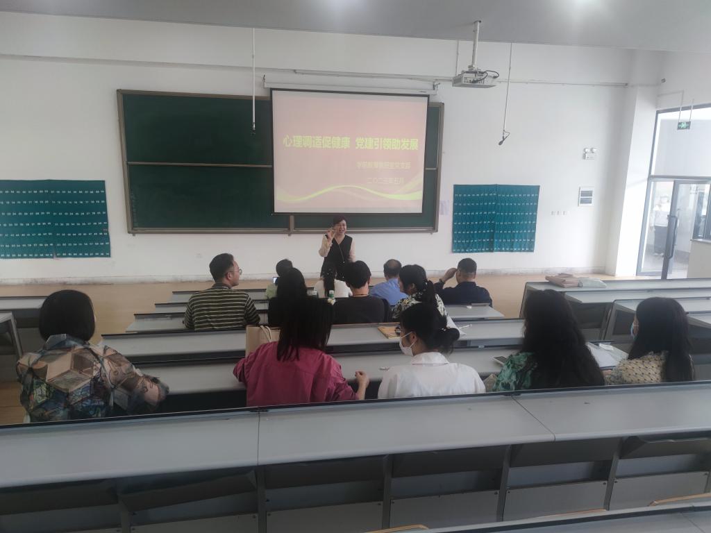 组织委员马慕青结合学前教育专业特色提出了党员同志心理调适的切实可行的方法,鼓励党员同志积极应对工作的挑战,找到适合自己的心理调适途径,以健康的心态和体魄投身教育事业和党建工作。