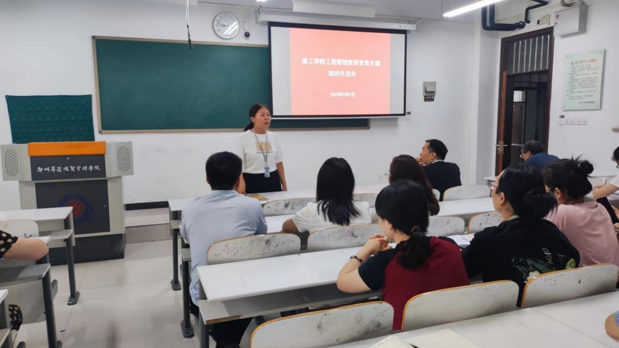 9月7日下午,建工学院工程管理教研室党支部在建工楼404召开学习贯彻习近平新时代中国特色社会主义思想主题教育专题组织生活会。会议由党支部书记杨爱丽主持。