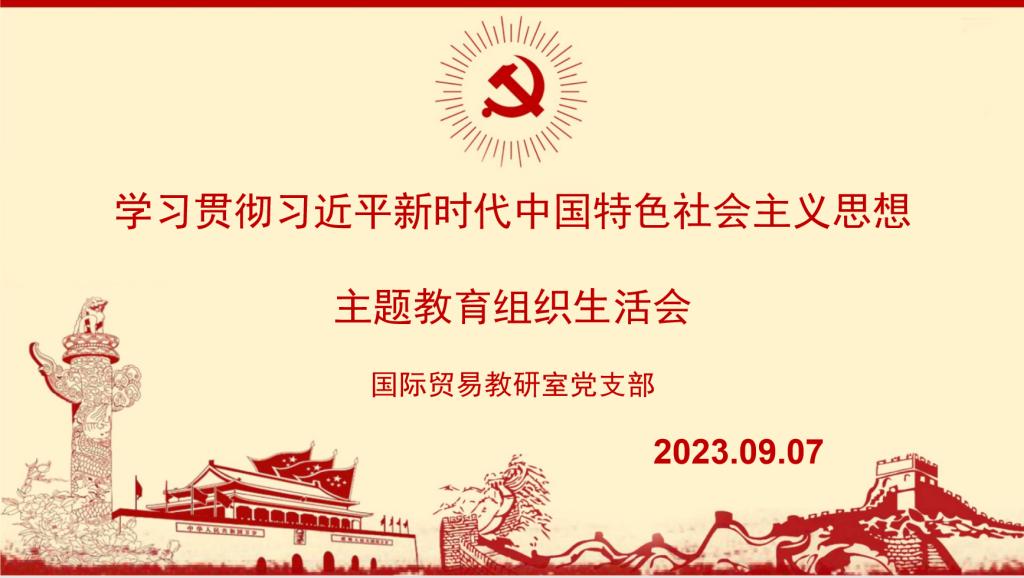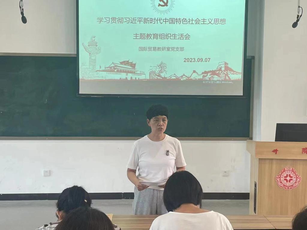 2023年9月7日,国贸教研室党支部召开主题为“学习贯彻习近平新时代中国特色社会主义思想”专题组织生活会。党员同志从理论学习、政治素养、能力本领、担当作为、工作作风、廉洁自律六个方面进行问题查摆,进行原因剖析以及提出整改的措施,同时,参照《民主生活会剖析反面典型案例》举一反三进行剖析,从而加强师德师风建设工作。