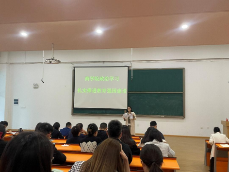 为深入学习贯彻习近平新时代中国特色社会主义思想,提高教职工政治理论素养,2023年9月28日下午2点,商学院在教学2号楼116大教室召开全体教职工会议,深入学习习近平总书记重要文章《扎实推动教育强国建设》。