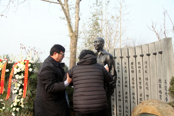 在校园建校纪念碑敬献鲜花活动结束后,院领导、各位主管,各党总支书记,创办人亲属与师生代表又乘车到龙湖镇福寿园,举行、参加向创办人塑像敬献鲜花纪念活动。创办人的女儿、学院董事长王淑芳女士,执行董事王新奇博士擦拭纪念碑和创办人塑像。创办人亲属、升达学院原常务副院长张强武,原升达学院职工张占武出席献花仪式,并敬献了花篮。