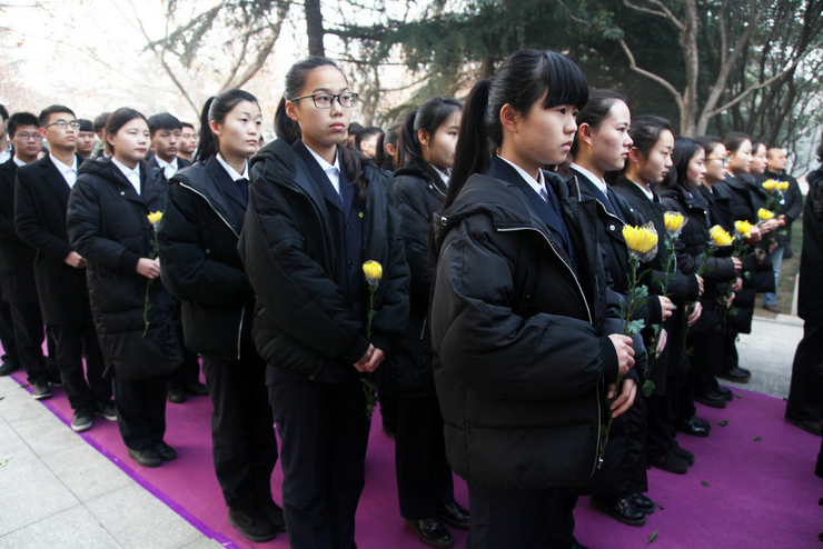 12月29日,是我院创办人王广亚博士逝世一周年纪念日,为缅怀创办人的丰功伟绩和高风亮节,继承创办人遗志,弘扬创办人教育思想,我院于今日上午在校园建校纪念碑广场、福寿园举行向创办人像献花仪式。